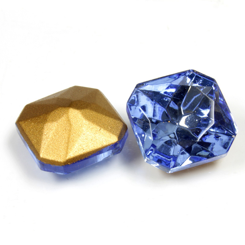 Glass Point Back Foiled Tin Table Cut (TTC) Stone - Square Octagon 18x18MM LT SAPPHIRE