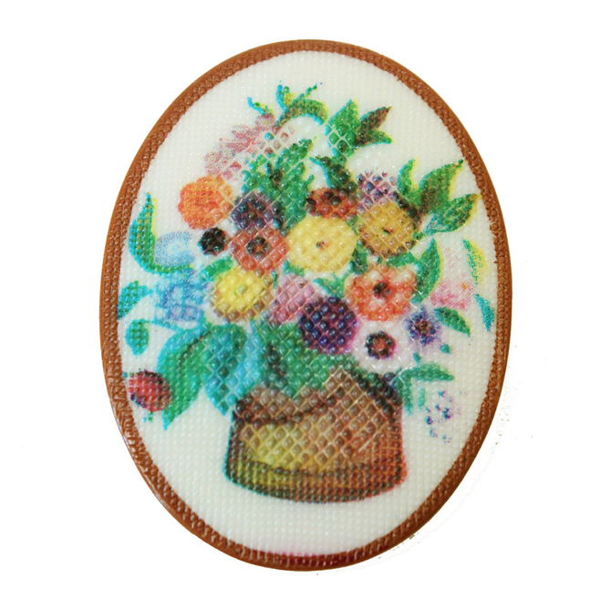 Made in West Germany. These vintage plastic decal stones have a textured fiinish making them look almost like cross stitch patterns. Also known as porcelain paintings and as cameo picture stones. Each flat back stone has a decal image applied to the top surface of a buff top cabochon base,. Due to their age background shadess may vary.