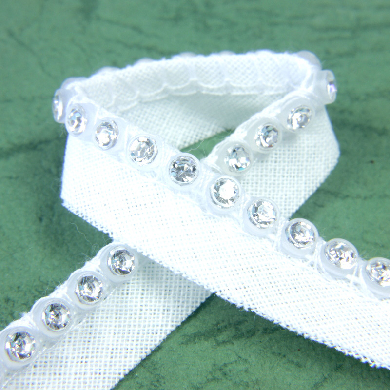 Plastic Rhinestone Banding 1 Row with Bias Tape One Side PP26 CRYSTAL-ALABASTER