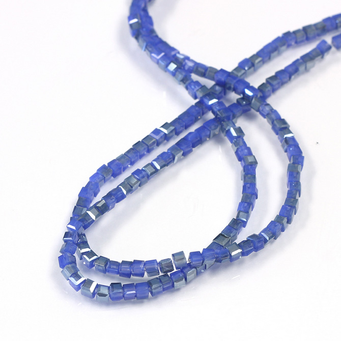 Chinese Cut Crystal Bead 30 Facet - Cube 02.5x2.5MM BLUE OPAQUE with LUMI Coat