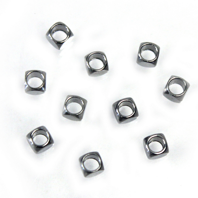 Stainless Steel Beads -Square Cube 02.5x2.5MM 316 Stainless Steel Unplated, Hole 1.5mm