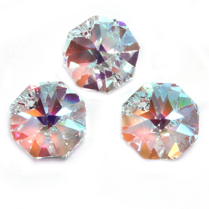 This multi facet octagon shape chandelier pendant from Preciosa Crystal has amazing brilliance and one hole for linking or stringing.