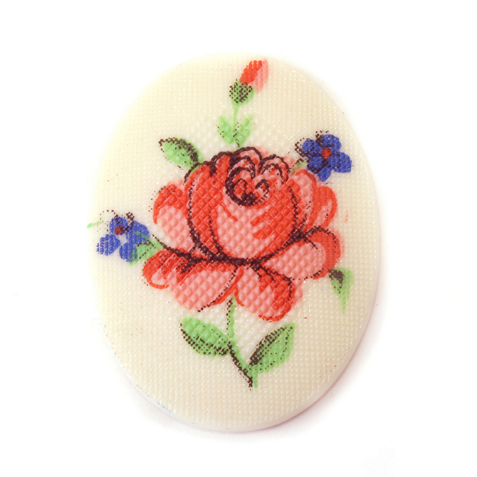 German Plastic Porcelain Decal Painting - PETIT POINT, Cross Stitch Look -Flower Oval 40x30MM PINK Rose ON WHITE BASE