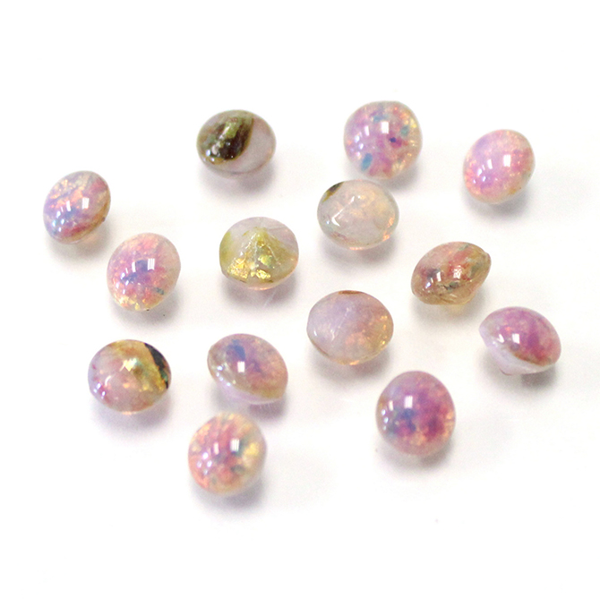 These glass stones have a smooth buff top with a pointed back and can be used in the same type of settings as machine-cut chatons, TTC (Tin Table Cut) and other point back stones. Made from specialty moonstone color glass, the heated rods of glass are hand pressed into metal molds and then tumble polished by skilled makers. Great for a vintage look, or as an accent piece in jewelry or on fashion accessories. Made in Germany.