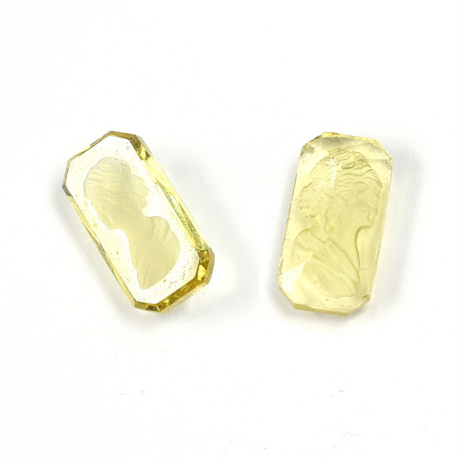 German Glass Pointed Back Intaglio Womans Head - Cushion Octagon 18x9MM MATTE JONQUIL ON JONQUIL