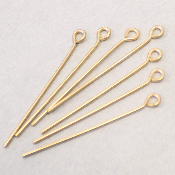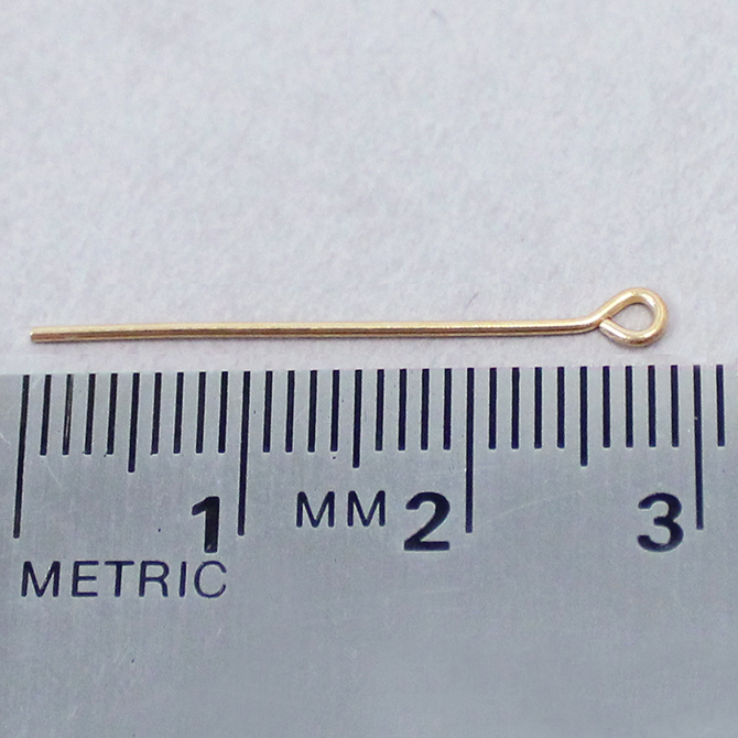 These Gold plated brass eye pins measure 25.4mm in length from under the eye and are 0.71mm thick. A jewelry maker staple. Eyepins are an excellent time saver when it comes to bringing your jewellery pieces together, as they already have a loop at one end, and can be easily manipulated to create bead links fairly quickly. Made from raw unplated brass, thesse are Nickel Free and lead free.