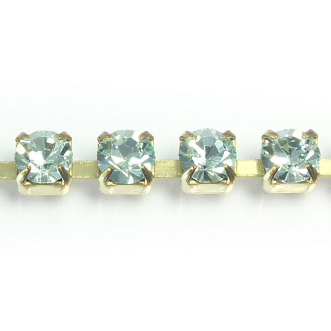 Our metal chain is the highest quality available today using heat resistant materials to ensure your creation turns out beautifully every time. Offered with Preciosa MAXIMA crystal stones set in rich gold finish this chain is ready to use. The MAXIMA crystals combine high quality lead free (less than 90ppm) with Preciosa Hi-Pure Crystal technology and amazingly brilliant facets. Combined with the innovative Dura-Foiling, the result is unrivaled optical properties and exceptional quality.