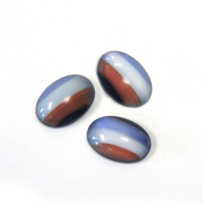 German Glass Medium Dome Striped Moonstone Cabochon - Oval 14x10MM RED/WHITE/BLUE COLOR STRIPES ON BLACK #SP122