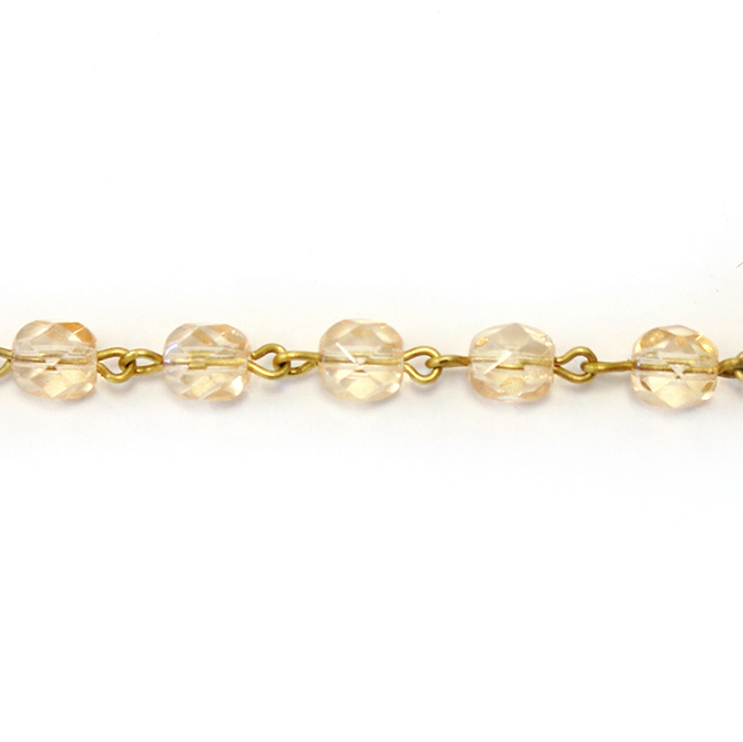 Linked Bead Chain Rosary Style with Glass Fire Polish Bead - Round 6MM LIGHT TOPAZ-Brass