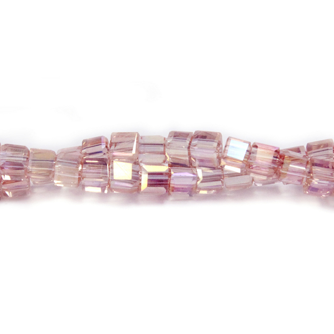 Chinese Cut Crystal Bead 30 Facet - Cube 03.5x3.5MM ROSALINE 1/2 LUMI Coat