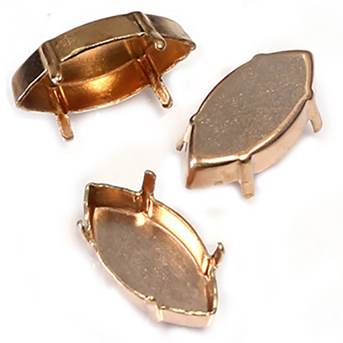 Made in Germany by Josef Bergs Co. This high quality brass closed back setting has four prongs designed to accomodate most Navette (Marquis) 18x9mm fancy crystal stones. Sold in Raw Brass, These settings can be used for soldering and creating your designs. Ready for plating or use as is. Check out our selection of stones to fit these settings!