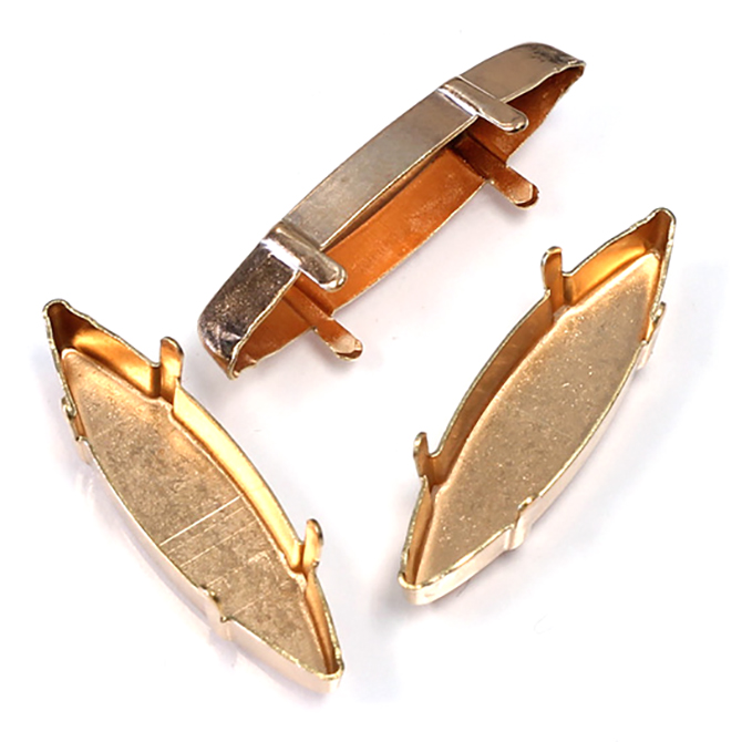 Made in Germany by Josef Bergs Co. This high quality brass closed back setting has four prongs designed to accomodate most Navette (Marquis) 35x9.5mm fancy crystal stones. Sold in Raw Brass, These settings can be used for soldering and creating your designs. Ready for plating or use as is. Check out our selection of stones to fit these settings!