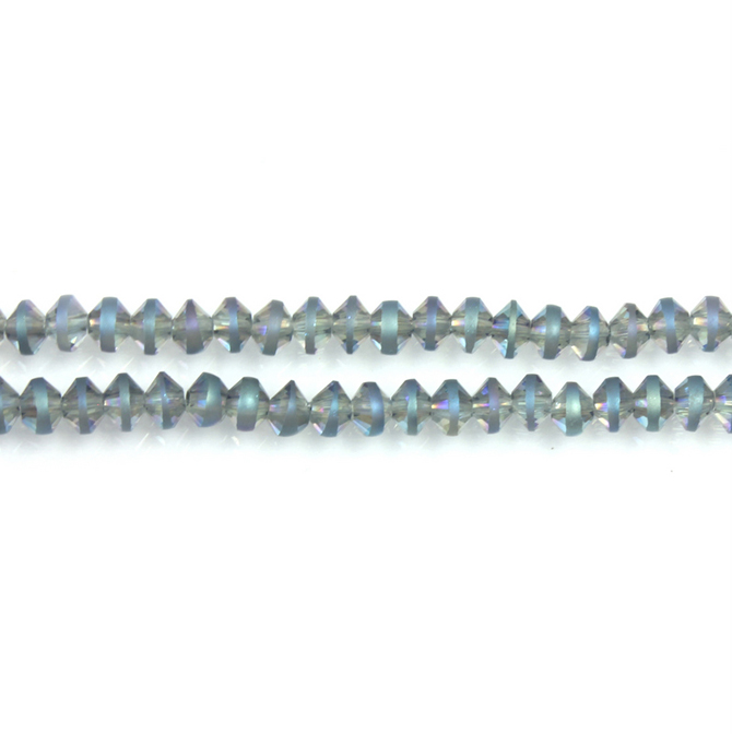 Chinese Cut Crystal Bead - Spacer 03.5x4.5MM CRYSTAL WITH FROSTED METALLIC BLUE RIM