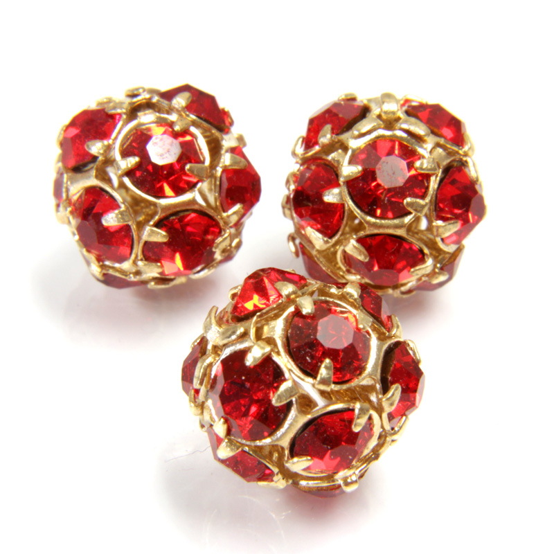 Czech Crystal Rhinestone Ball - 12MM LT SIAM RUBY-GOLD