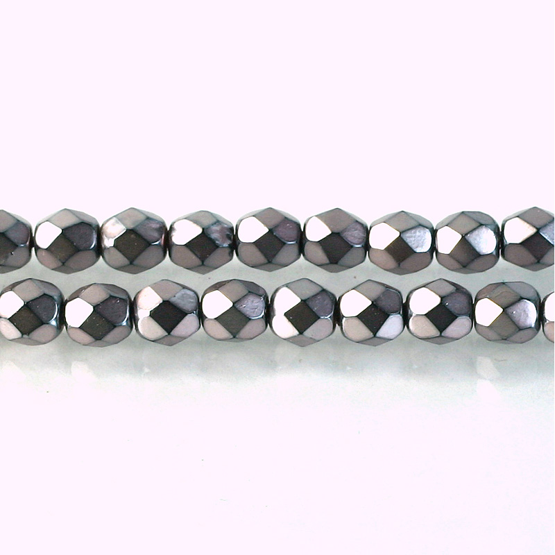 Czech Glass Pearl Faceted Fire Polish Bead - Round 06MM ROSE ON BLACK 72102