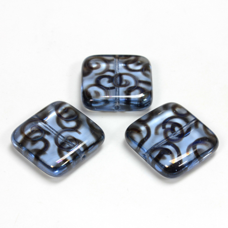 Czech Pressed Glass Bead - Smooth Flat Square 18x18MM PATTERN on LT SAPPHIRE