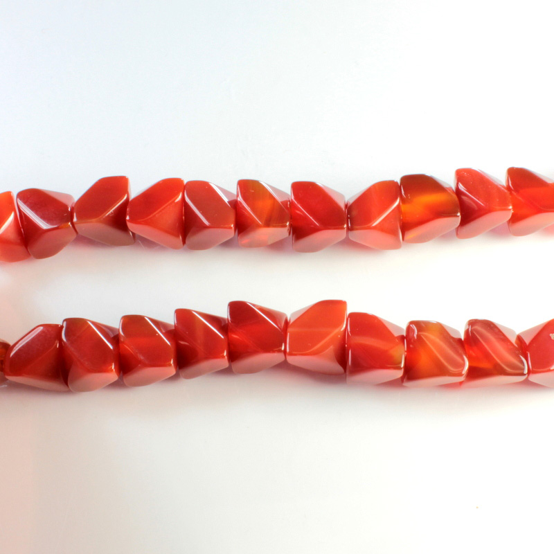 LIMITED STOCK. These faceted gemstone beads have a v-cut faceting which create an almost triangular shape faceted bead with an interesting variety aspects. Each bead has a 2.5mm diameter hole for ease of use. Since each bead is the result of handcrafted lapidary work, you should still expect some natural variation in color and sizing.