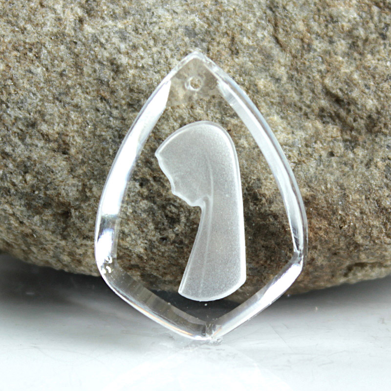 Made in Germany. These pendants, also known as crystal painting pendants, or reverse carved pendants are miniature works of art. Each hand pressed glass piece features a smooth buff top through which you can see a detailed intaglio image, molded into the back of the stone. The intaglio carving is then painted or coated, and the surrounding surface is cut or polished to remove excess color and highlight the image.