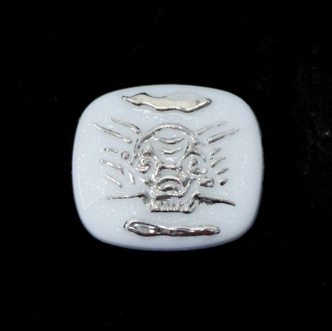 German Glass Flat Back Cameo SUN Design Cushion Antique 16x14MM SILVER ON CHALKWHITE