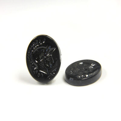 These glass intaglios are hand crafted from vintaqe design tools. Each stone has the image of a warrior head engraved into the surface. Available in matching left and right facing styles for use as earrings, cuff links, or accessories.