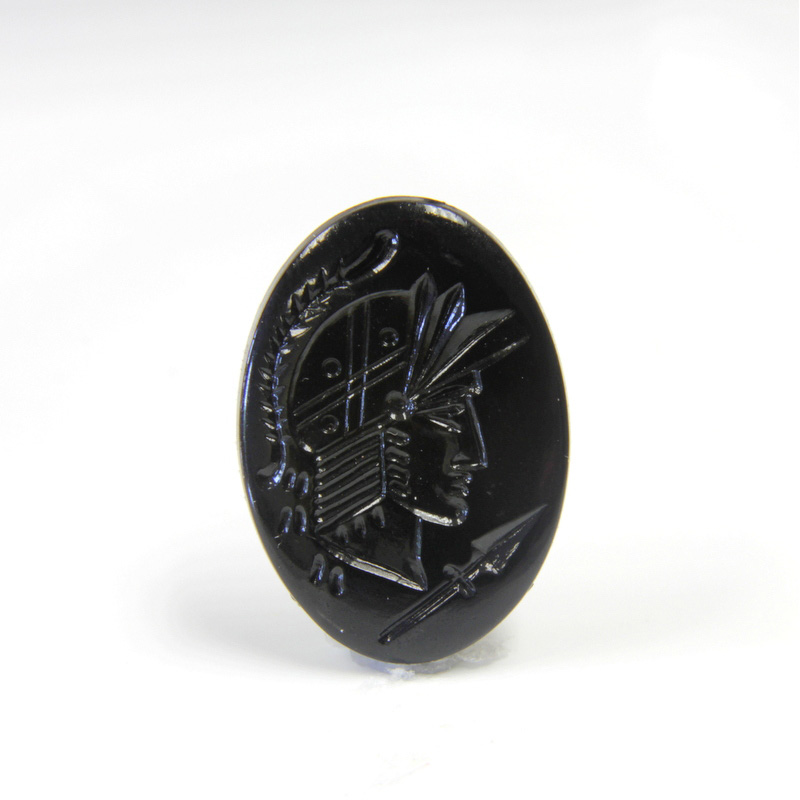 Glass Flat Back Intaglio - Warrior Head Oval 25x18MM JET Right Facing