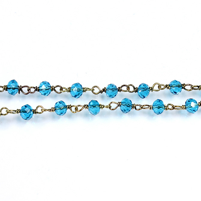 Made in India. This linked bead chain combines the beauty of machine cut crystal rondelle beads with hand linked raw brass loops for an elegant look. Finish them off with a clasp, or use with a pendant or connector for other designs. Sold in one meter lengths.