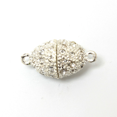 An elegantly designed rhinestone clasp set with crystal chatons and finished in silver. The strength and reliability of our magnetic clasps will never let you down. Due to the nature of these clasps, they should not be used in children's jewelry.