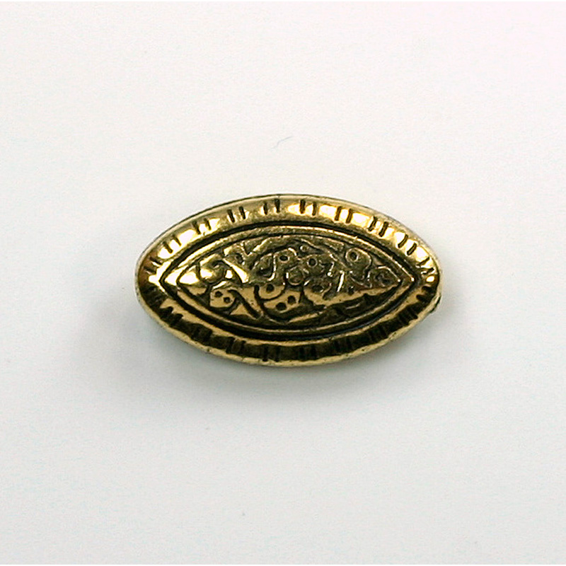 Metalized Plastic Engraved Bead - Fancy Oval 20x12MM ANT GOLD
