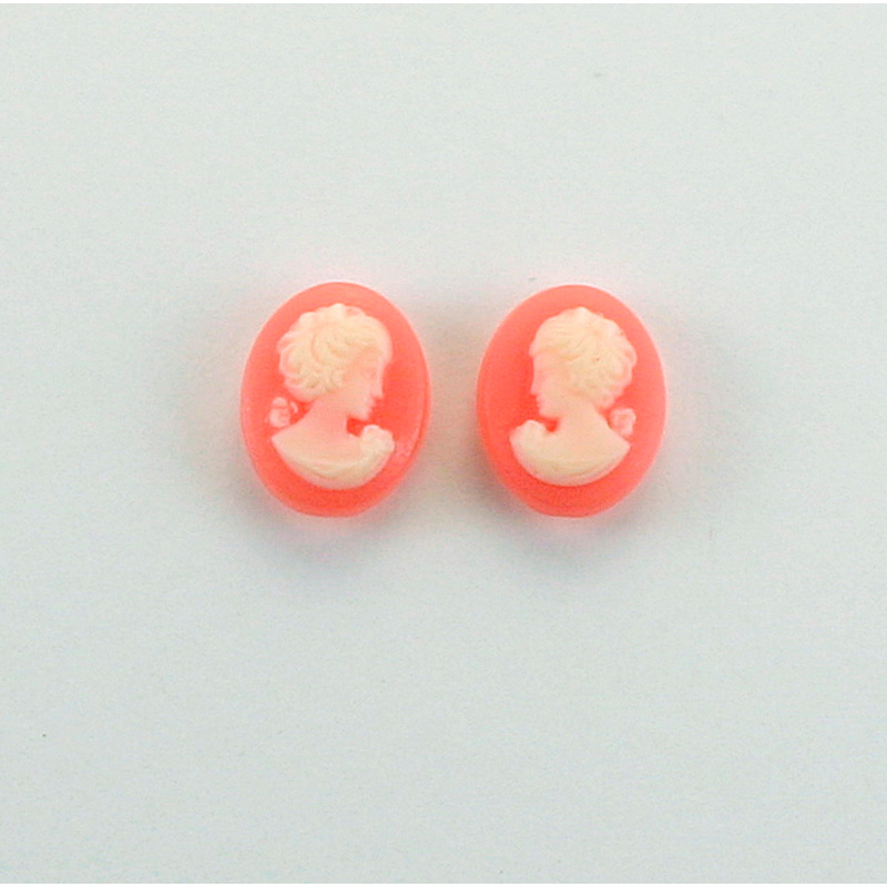 Plastic Cameo - Woman with Bow Oval 10x8MM IVORY ON CORNELIAN
