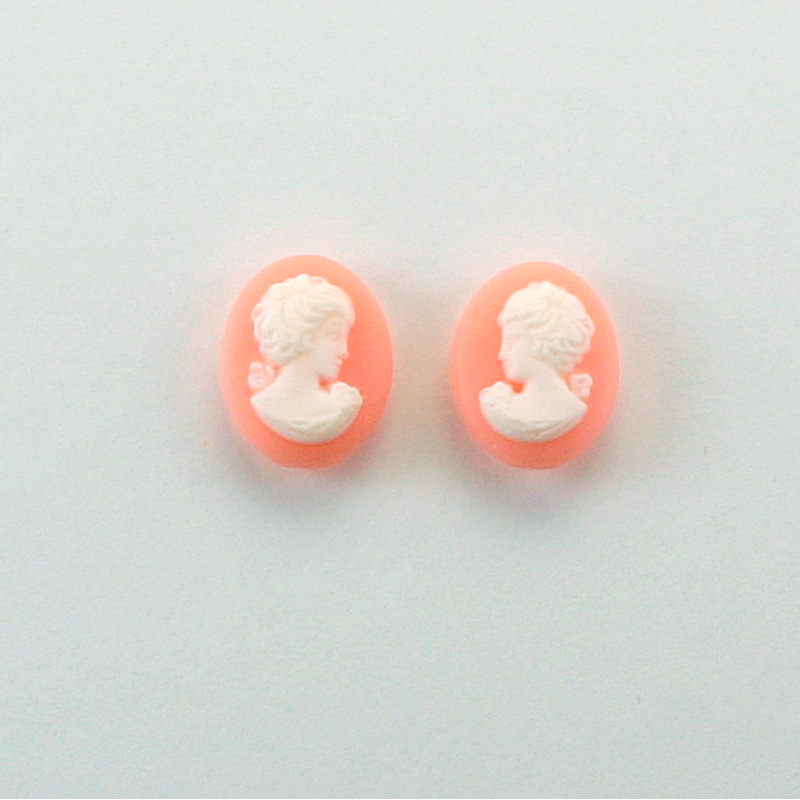 Plastic Cameo - Woman with Bow Oval 10x8MM WHITE ON ANGELSKIN