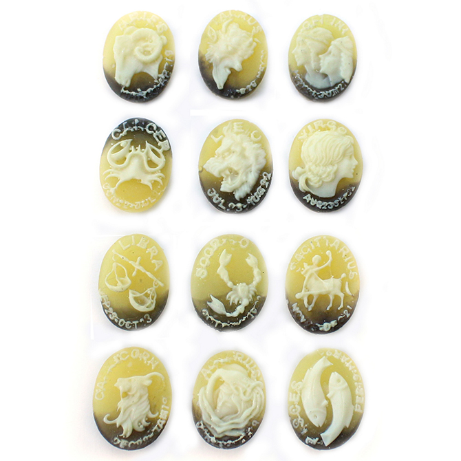 Plastic Cameo - Zodiac Series Oval 18x13MM IVORY ON TORTOISE SHELL (2 tone) Sold as 12 assorted