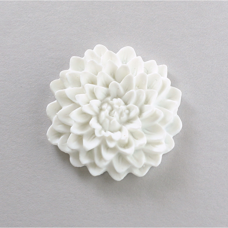 Plastic Carved No-Hole Flower - Mum Resin 33MM MATTE WHITE