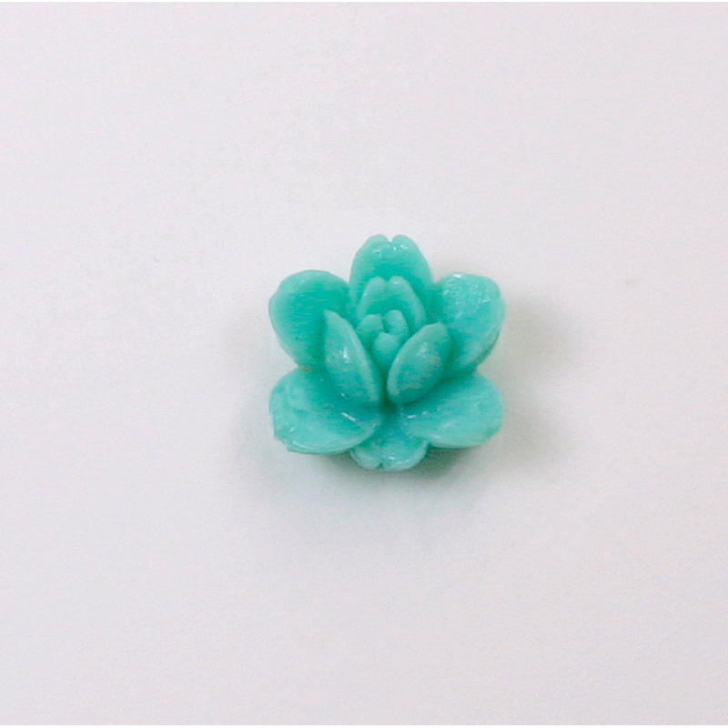 Plastic Carved No-Hole Flower - Rose 14MM TURQUOISE