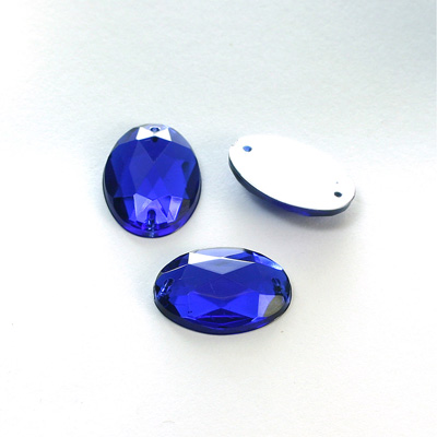 Plastic Flat Back 2-Hole Foiled Sew-On Stone - Oval 18x13MM COBALT