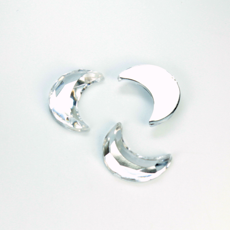 Plastic Flat Back Foiled Rose Cut Rhinestone - Half Moon 17MM CRYSTAL