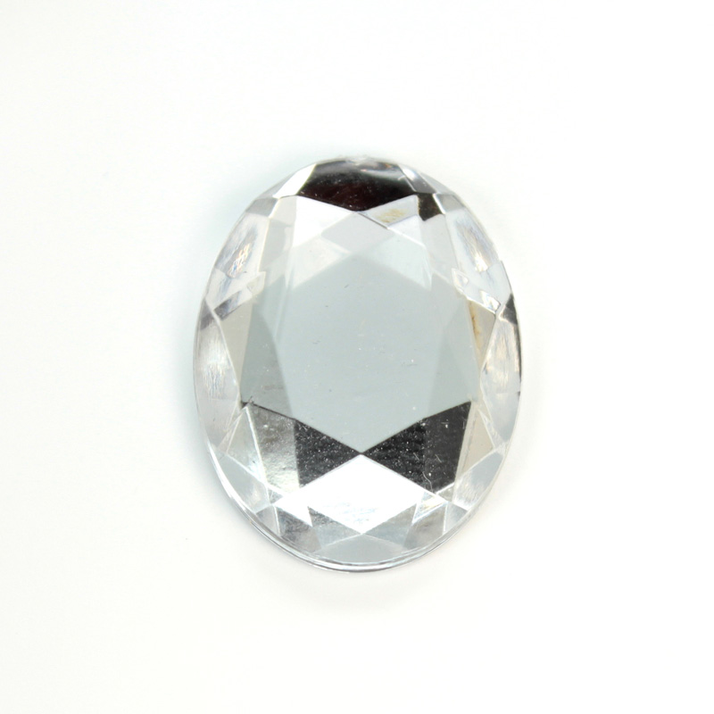 Plastic Flat Back Foiled Rose Cut Rhinestone - Oval 30x22MM CRYSTAL
