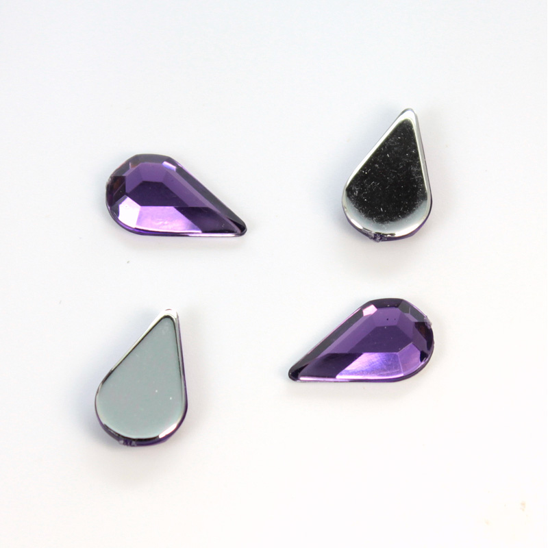 Plastic Flat Back Foiled Rose Cut Rhinestone - Pear 13x8MM AMETHYST