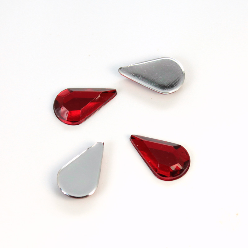Plastic Flat Back Foiled Rose Cut Rhinestone - Pear 13x8MM RUBY