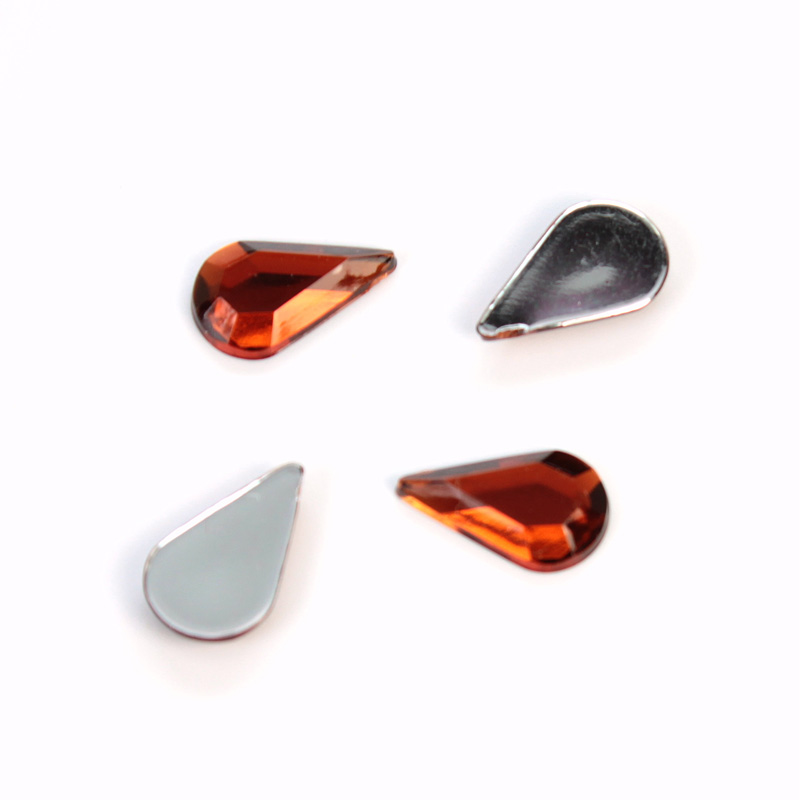 Plastic Flat Back Foiled Rose Cut Rhinestone - Pear 13x8MM SMOKE TOPAZ