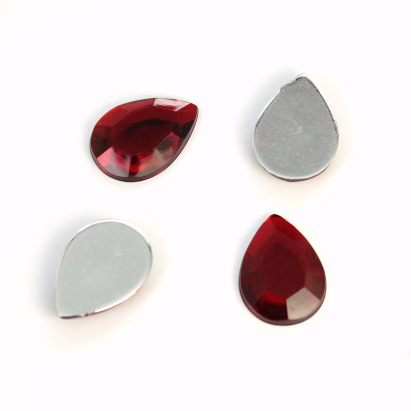 Plastic Flat Back Foiled Rose Cut Rhinestone - Pear 14x10MM RUBY