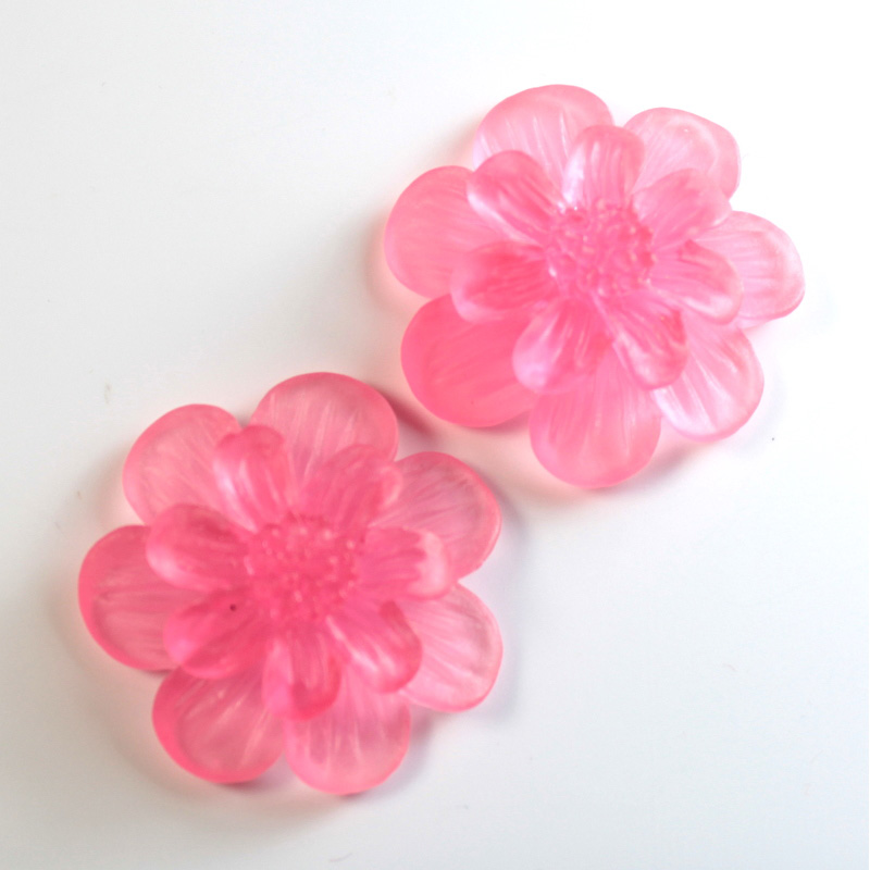 These carved resin flowers have a lalique frosted effect and a flat back, ready to accent your fashion accessories and designs.