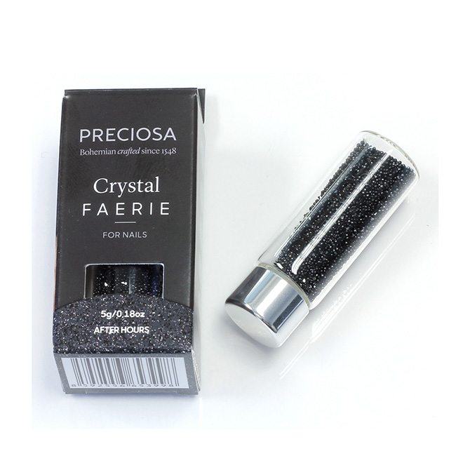 Introducing the newest color for Crystal Faerie by Preciosa. We call it "After Hours" and it is a Jet with Hematite like coating. This 5 gram bottle is full of sparkle and glitter! Each piece inside has been individually sized, shaped and polished with the result of a nail art product that gives off a truly unrivalled sparkle. Use on each nail to create a stunning eye-catching manicure, or simply apply to one or two statement nails to bring them to life.