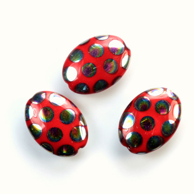 Pressed Glass Peacock Bead - Oval 18x13MM SHINY RED