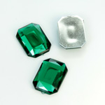 Plastic Flat Back Foiled Rose Cut Rhinestone - Cushion Octagon 18x13MM EMERALD