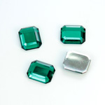 Plastic Flat Back Foiled Rose Cut Rhinestone - Cushion Octagon 10x8MM EMERALD