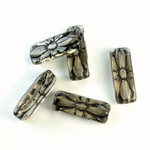 Czech Pressed Glass Engraved Bead - Cushion 20x8MM BLACK ON BLACK DIAMOND