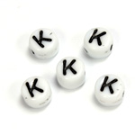 Czech Pressed Glass Engraved Bead - Alphabet 6MM BLACK ON WHITE