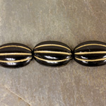 Czech Pressed Glass Bead - Ribbed Melon Oval 17x11MM GOLD on JET
