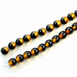 Czech Pressed Glass Bead - Smooth 2-Color Round 08MM COATED BLACK-DK YELLOW