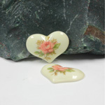 Japanese Glass Porcelain Decal Painting - Rose Heart 18x14MM PINK ON CHALKWHITE